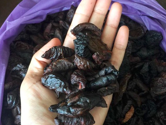 Buah ini kemudian dijemur di bawah terik matahari hingga kering dan berwarna cokelat kehitam-hitaman.