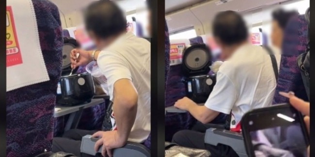 Kemudian, ia menikmati bekal makanan tersebut ketika dalam perjalanan menggunakan kereta. Aksinya telah ditegur oleh petugas, tetapi pria itu tetap enggan menutup bekalnya.
