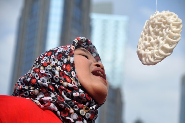 Perayaan HUT RI identik dengan berbagai gelaran lomba. Selain panjat pinang dan bakiak, lomba makan kerupuk juga menjadi salah satu yang paling banyak diselenggarakan.