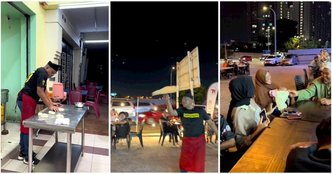 Berbagai hiburan sengaja dihadirkan penjual untuk menarik pelanggan. Gegara kejadian tak terduga, seorang pembuat roti canai bikin pelanggannya teriak heboh.