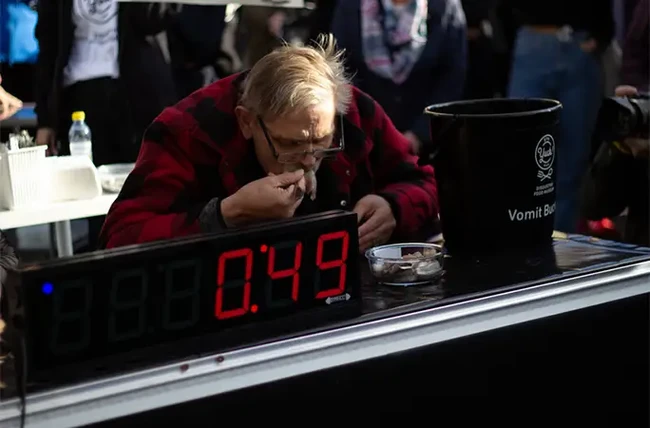 Ada yang unik dalam rekor makanan yang satu ini. Pasalnya bukan makanan lezat yang dimakan, melainkan cabai pedas. Rekor makan ini dilakukan oleh pria asal Ningxiangpu, China yang dikenal bernama Tang Shuaihui.