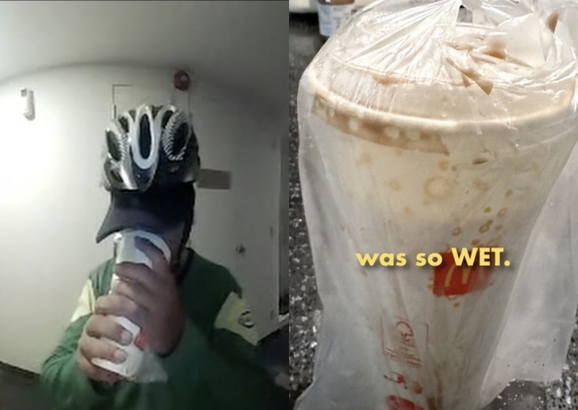 Seorang pengemudi ojol tertangkap kamera pengawas sedang melahap pesanan pelanggannya. Ia yang terlalu haus nekat meneguk sebagian minuman pesanan ini.