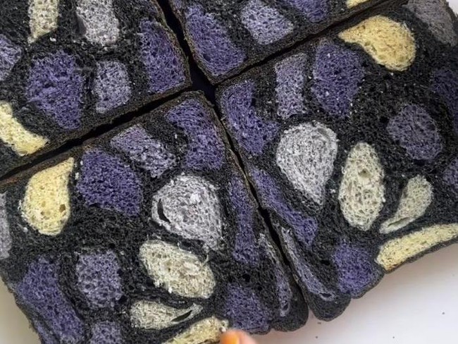 Baker ini membuat roti tawar dengan tampilan corak yang cantik. Coraknya ini mengingatkan pada tampilan kaca patri yang warna-warni.
