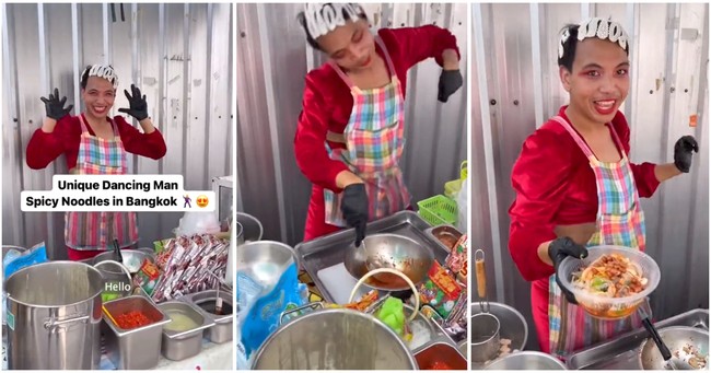 Hal ini lantaran penjual yang tak disebutkan namanya itu berjoget dengan heboh. Ia menggoyangkan kepala hingga seluruh badannya saat meracik bumbu untuk bihun.