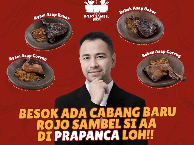 Raffi Ahmad belakangan giat mengembangkan bisnis kuliner miliknya yang bertaraf UMKM, Rojo Sambel. Gerainya bermulai di Kalibata, lalu dalam waktu relatif cepat, bertambah banyak sampai ke luar kota. Terbaru, Raffi memperkenalkan cabang Rojo Sambel di Prapanca. Lokasi tepatnya di dekat Apartemen Brawijaya Prapanca.
