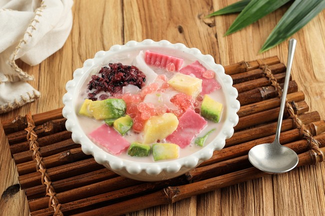 Umumnya es nusantara tersebut berisi es batu yang diserut halus, buah-buahan, mutiara, ketan, roti, dan kemudian disajikan dengan paduan kuah santan, sirup, dan susu.