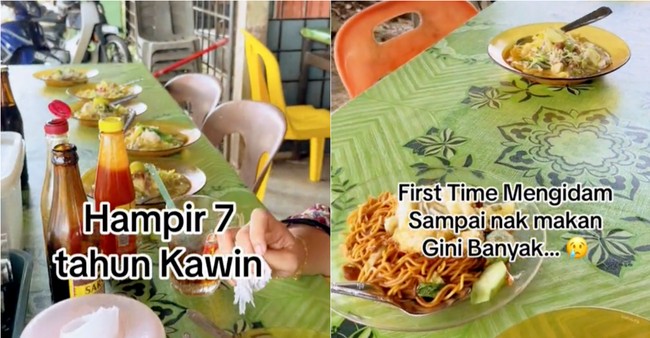"Hampir 7 tahun menikah. Ini pertama kalinya mengidam sampai mau makan segini banyak," tulis sang suami dalam keterangan video yang dibuat olehnya.