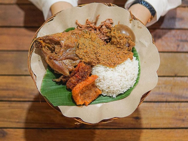 Nasi gudegnya disajikan dengan krecek dengan cita rasa pedas. Selain itu, kamu juga bisa memilih lauk utama, seperti telur, ayam, hingga tahu.