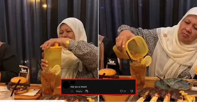 Namun yang membuat video ini viral justru gelas kosong berisi es batu yang dipesan sang ibu. Dengan santainya, sang ibu mengeluarkan botol minuman berukuran besar yang sudah dipersiapkan dari rumah.