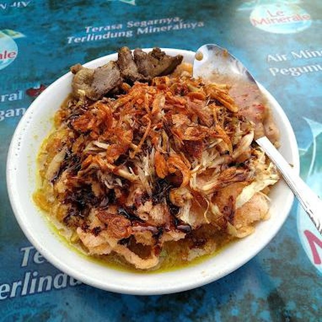 Mulai dari ayam suwir yang berukuran besar, cakwe, kerupuk dan seledri. Sambalnya yang encer memiliki rasa pedas dan gurih. Kamu juga bisa menambah topping berupa ati, ampela, dan sate usus.