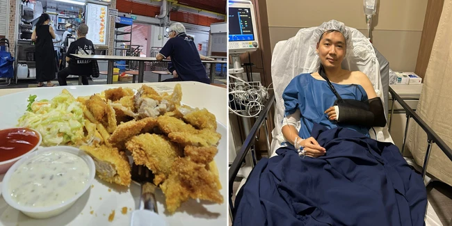 Alami cedera, seorang pelanggan kedai kaki lima dapat perlakuan hangat dari pemilik kedai. Bantuan yang diberikan memudahkannya untuk makan dengan satu tangan.