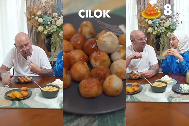 Ayah Irish Bella ini juga mencoba seblak, risol, dan cilok. Ketika mencicipi risol, Johan menggunakan garpu dan pisau layaknya cara makan orang Barat.