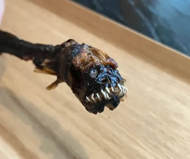 Dilansir dari Sora News24 (15/12), camilan belut ini menarik perhatian karena tampil berbeda dengan belut lainnya. Belut ini dibentuk menyerupai sate yang dipanggang, lengkap dengan kepala belut yang masih utuh sehingga bentuknya menyeramkan seperti alien.