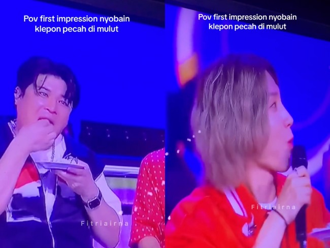 Suasana semakin heboh ketika anggota Super Junior L-S-S itu tiba-tiba membagikan klepon kepada penggemarnya. Tidak hanya klepon, rupanya anggota Super Junior itu juga sempat mencoba jajanan kekinian seblak.