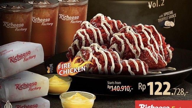 Lewat promo Mabar (Makan Bareng) dengan harga Rp 122.728 sudah bisa mencicipi tiga ayam goreng Truffle Fire Chicken lengkap dengan nasi dan minumnya. Ada juga promo ngemil hemat dengan harga Rp 13.000 sudah bisa minum dan ngemil.