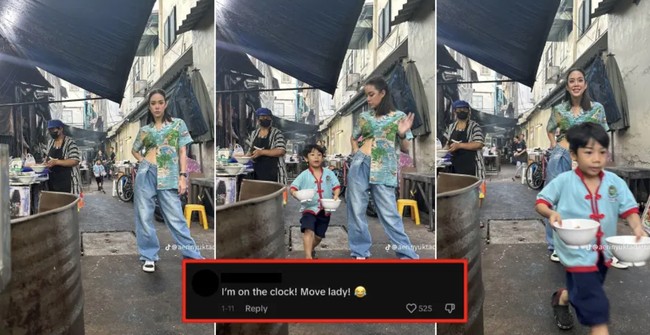 "Saya terburu-buru! Minggir mba!," komen seorang netizen yang seolah menyuarakan hati sang bocah. "Pesanan Anda siap! Saya sedang mengantarnya," sahut netizen lain.