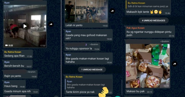 Pada unggahan akun X @txtdrkostan (6/2) percakapan antara penghuni dan pemilik kos diunggah. Dalam tangkapan layar tersebut terpampang grup dengan nama Kost Tawakal VI No.1 yang sedang melaporkan kegiatan di sebuah indekos.