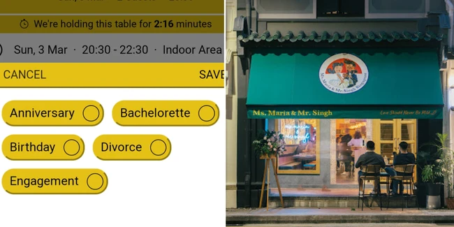 Must Share News melaporkan (27/2) sebuah restoran yang tengah disoroti oleh netizen pada media sosial Reddit. Sebuah restoran yang berlokasi di Singapura ini menjadi perbincangan karena pada sistem reservasi online mereka menghadirkan pilihan untuk menyelenggarakan kepentingan yang tak biasa.