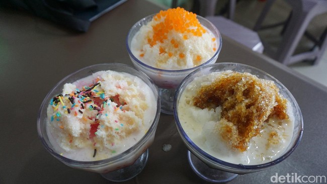 Ada juga menu Es Campur Medan Asli, isinya ada cendol, nata de coco, kolang kaling, selasih, lengkong atau cincau, kacang merah rebus, biji mutiara, tape. Kemudian disiram kuah santan dan gula merah. Kisaran harganya sekitar Rp 40.000, tapi dijamin puas karena porsinya yang tak pelit.