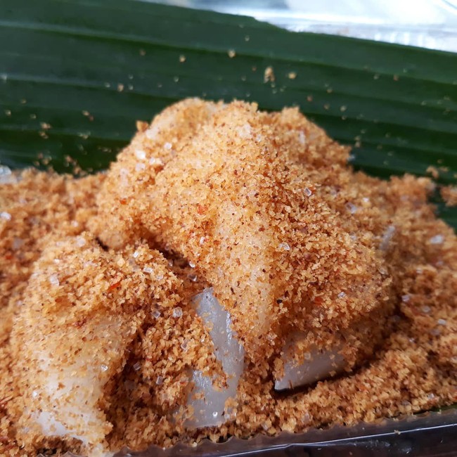 Kudapan ini terbuat dari beras ketan yang dilengkapi dengan taburan serundeng kemudian dilapisi dengan kemasan plastik. Ada cara unik yang dilakukan untuk menyantap ketan ini, yaitu dengan mencocolnya pada kuah semur atau menyantap bersamaan dengan empal daging.