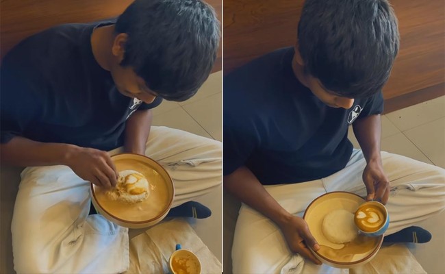 Menikmati kopi hangat biasanya dipadukan dengan makanan manis, seperti kue atau biskuit. Namun, berbeda dengan pria asal India ini yang memadukan kopi dan nasi.