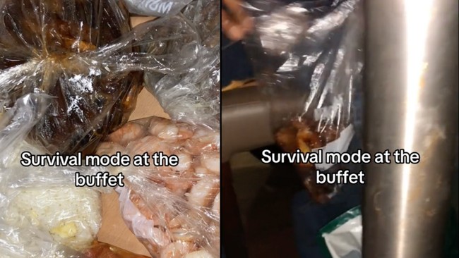 Tidak hanya pakai plastik, pria ini juga terlihat memasukkan beberapa makanan ke dalam wadah kotak. Kurang lebih ada 7 jenis makanan dari restoran buffet ini yang ia bawa pulang, lapor dexerto.com (22/04).