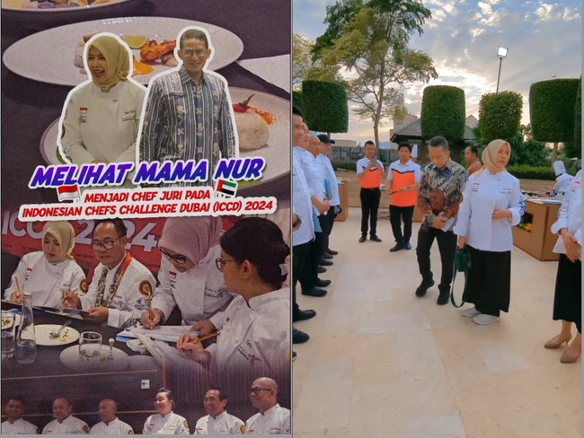 Dalam video yang dibagikan oleh Nur Asia, tampak istri Sandiaga Uno itu bertemu dengan beberapa chef ternama dari Indonesia. Kemudian, ia juga melihat langsung kompetisi yang sedang berlangsung.