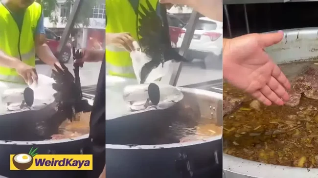 Di video yang beredar, ketika burung gagak itu diangkat terlihat tetesan darah bekas luka tembakan menetes ke dalam sop buntut serta beberapa bagian bulu yang tertinggal di pinggiran panci.