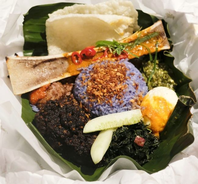 Salah satu yang paling menarik perhatian ada menu Nasi Padang seharga Rp 235.000++. Nasi Padang di sini tampil mewah dengan rendang dari daging wagyu, kemudian gulai tulang sumsum, gulai nangka, sampai chicken wings yang dibuat ala ayam pop.