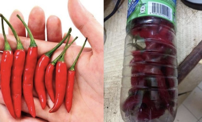 3. Masukkan cabe ke dalam botol bekas air mineral, tanpa membuang batangnya.