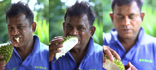 Bahkan ada momen pria itu menggigit potongan tebal kulit durian dan mengunyahnya seperti ngemil cookies. Terdengar juga suara renyah saat pria itu mengunyah kulit durian.
