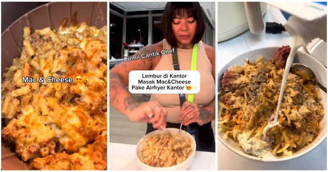 Tetapi kreativitasnya justru dimanfaatkan untuk menggunakan fasilitas yang ada di kantornya. Melihat ada air fryer yang siap dipakai, ia beride memasak macaroni and cheese di ruangan kantor.