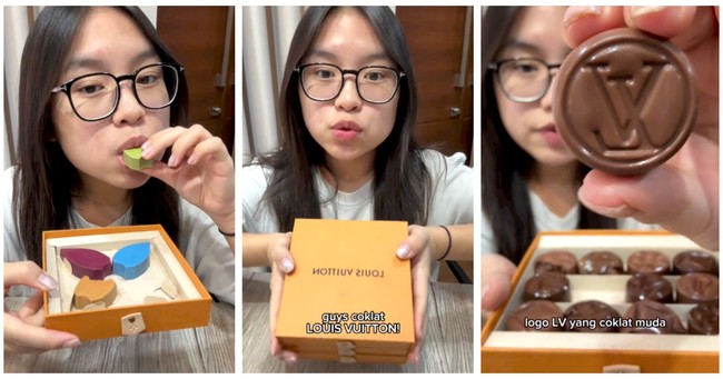 Adalah TikToker @natashalaurentinaa (3/7) yang mengulas sepaket cokelat yang baru saja dibelinya dari gerai Louis Vuitton. Cokelat tersebut bahkan diproduksi secara eksklusif dan terbatas hanya tersedia di negara tertentu saja.