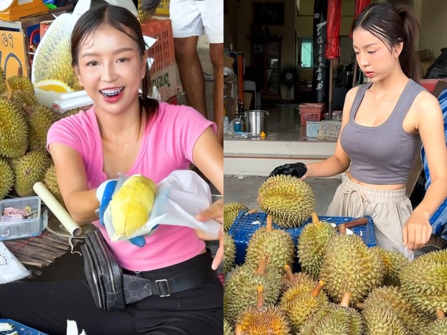 Wanita itu diketahui bernama Sukthida Chaiyarop, melihat dari akun Instagram yang disematkan oleh pemilik channel YouTube. Ia berjualan menawarkan durian dengan penampilan seksinya.