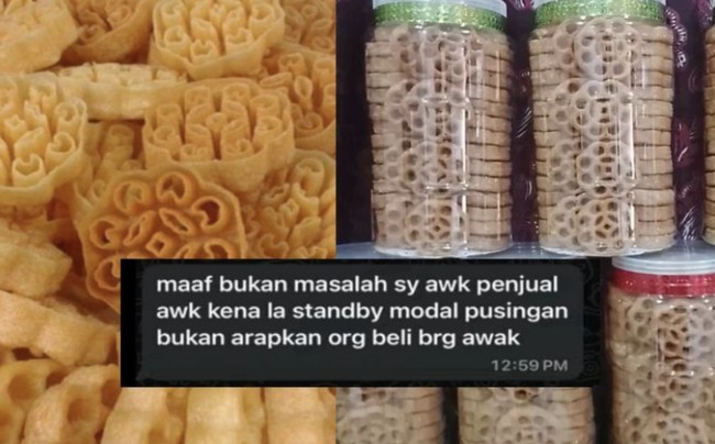 Pesanan kuih ros pun jadi dan tinggal dibayar pembeli. Namun pembeli itu membatalkan pesanan kue tanpa alasan yang jelas.