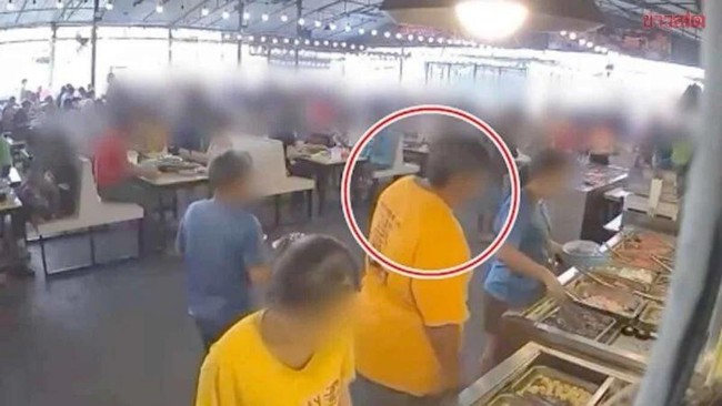 Bahkan dalam video rekaman CCTV juga terlihat ia terus-menerus mengambil makanan. Ia mengisi keranjang makanannya dengan udang, daging, dan sayur-sayuran.