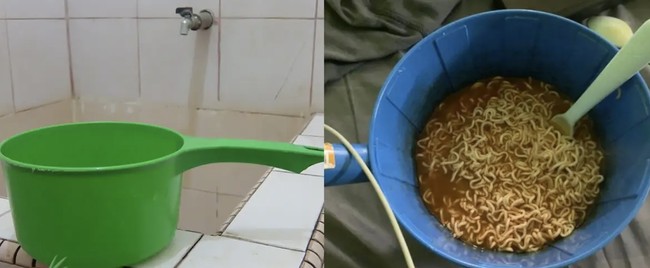 Anak kos punya segudang cara untuk bertahan hidup dalam kepraktisan. Salah satunya menyajikan mie instan di gayung sebagai wadah. Duh, ada-ada saja!