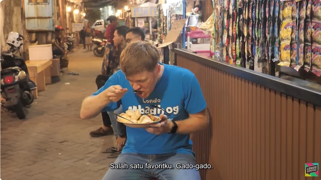 Ternyata, Londo Kampung memang menyukai gado-gado. "Salah satu favoritku, gado-gado. Enak banget! Aku lebih suka gado-gado yang bumbunya mirip pecel," katanya.