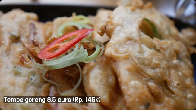 Harga tempe goreng itu tampak mencengangkan. Seporsinya dibanderol 8,5 Euro atau sekitar Rp 146.000 dengan isi 6 potong. Jika dibandingkan dengan Indonesia, harganya bisa mencapai 14 kali lipat per porsi.