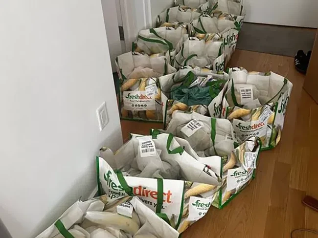 Selang satu hari setelah pemesanan, Alle menyadari ada yang salah dengan pesanannya tersebut. "Biasanya pesanan saya sekitar 2 kantong bahan makanan. Ketika saya membuka pintu ada sekitar 15 belas kantong di lorong apartemen," ungkapnya.