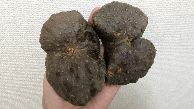 Namun, berbeda dengan kentang ditemui di sebuah pasar sayuran di Jepang ini. Kentangnya berbentuk seperti bongkahan batu bergerigi di sekujur kulitnya yang berwarna hitam.