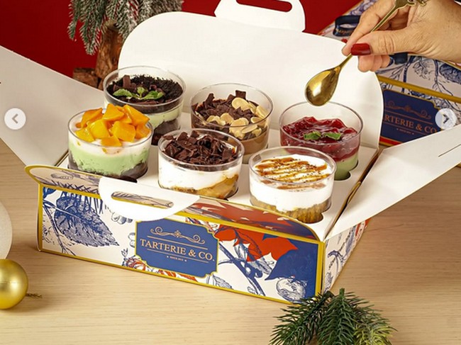 Berlokasi di Jakarta, toko kue Tarterie and Co menyediakan aneka dessert yang halal, lengkap dengan rangkaian hampers cantik untuk Natal dan tahun baru 2024. Toko kue ini menerima pesanan hampers Natal dadakan dengan minimal pemesanan h-1 sebelum tanggal pengiriman.