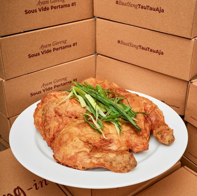 Sous vide merupakan teknik di mana makanan dimasak dalam kantong plastik kedap udara yang direndam dalam air panas pada suhu yang dikontrol. Sehingga tekstur ayam gorengnya tetap juicy dan tidak kering sama sekali.