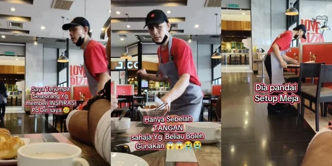 "Ia mengingatkanku untuk selalu merasa rendah hati. Walaupun memiliki keterbatasan, dia bisa membersihkan meja, melayani pesanan, bergerak cepat, menyiapkan meja untuk pelanggan lain dan bahkan mengantarkan makanan," ujar Muhammad Zakwan selak pengunggah pertama video terkait.