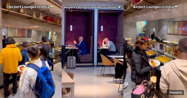 Akun Instagram @anuvindkanwal memperlihatkan bagaimana sepi dan tenangnya lounge bandara di negara lain pada awal video. Sementara ada suasana yang padat, ramai, hingga antri mengambil makanan yang kacau di bandara di India.