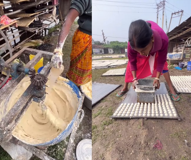 Persiapannya masih terlihat tradisional, dimulai dengan seorang pedagang wanita yang menguleni adonan dal dalam mesin, lalu memindahkannya ke cetakan. Semua prosesnya menggunakan tangan telanjang.