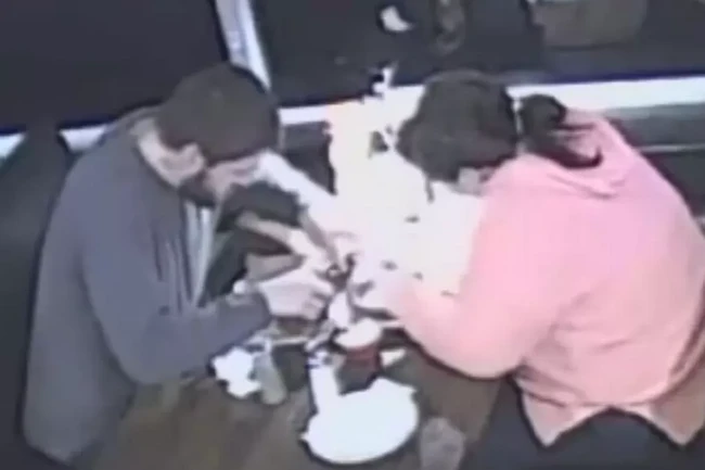 Pasangan satu ini tertangkap kamera CCTV sedang melakukan aksi curang di restoran. Mereka menaruh rambut di atas makanan agar mendapatkan makanan gratis.