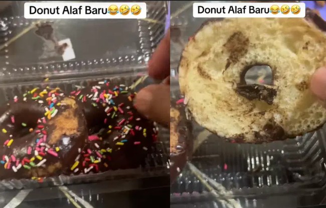 "Hanya ingin bertanya, saya memang sudah lama tidak jajan donat saat bazar Ramadan. Tapi apakah donat dijual dengan cara seperti ini sekarang? Ini tuh satu donat, tapi penjual membelahnya jadi dua bagian. Apa ini cara jualan donat di era modern?" tanya Hakim penasaran.