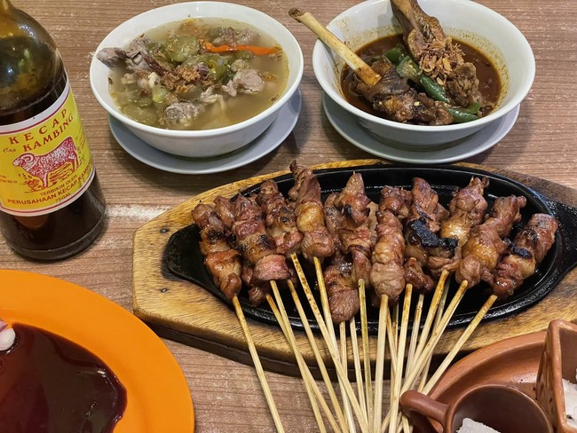 Selain sate kambingnya yang nikmat, tersedia juga gule, sop, hingga asem-asem kambing yang menggugah selera. Yang menarik, di sini sate pesanan disajikan dengan hot plate sehingga menambah sensasi kelezatannya.