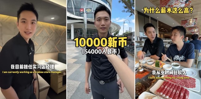 Konten kreator Xavier Chen asal Singapura mewawancarai pegawai restoran hot pot Haidilao di gerai Plaza Singapura bernama Ronghui. Ia menjabat sebagai manajer gerai trainee.